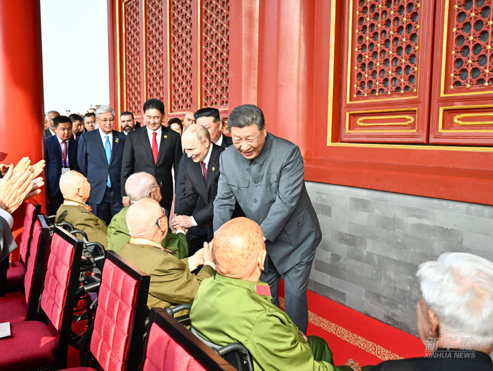 新華圖訊|習(xí)近平登上天安門(mén)城樓 同抗戰(zhàn)老戰(zhàn)士老同志代表親切握手