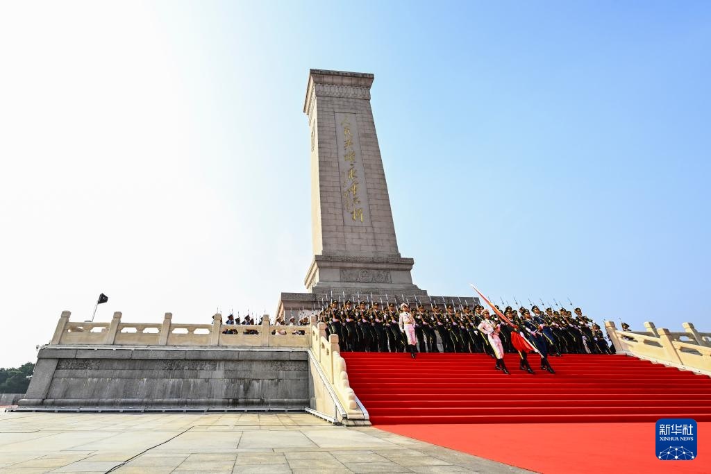 9月3日,紀念中國人民抗日戰(zhàn)爭暨世界反法西斯戰(zhàn)爭勝利80周年大會在北京隆重舉行。這是國旗護衛(wèi)隊從人民英雄紀念碑基座出發(fā),走向旗桿基座。