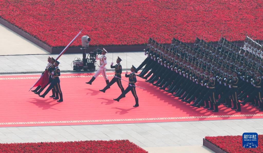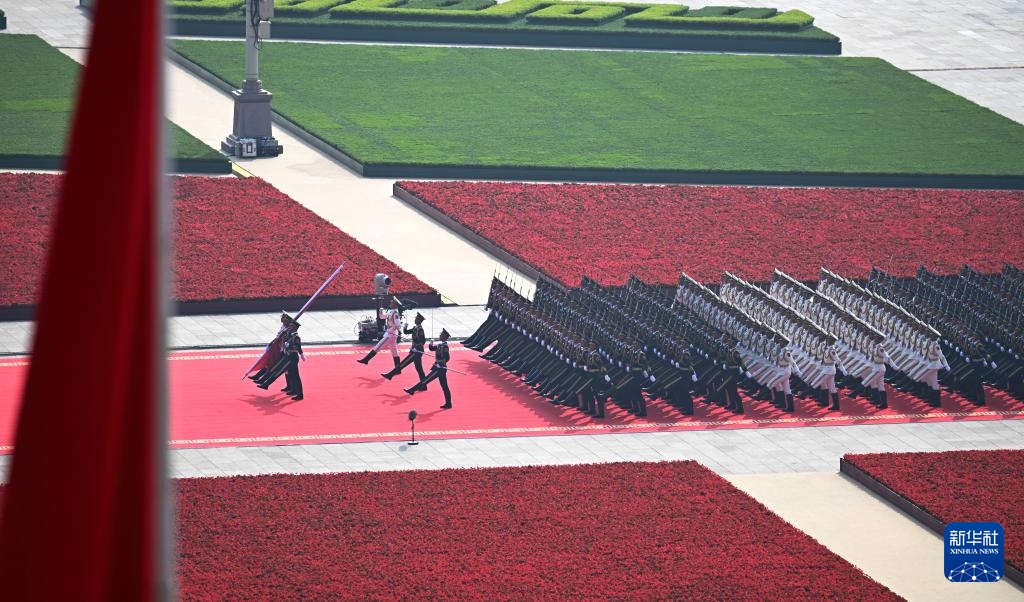 9月3日,紀念中國人民抗日戰(zhàn)爭暨世界反法西斯戰(zhàn)爭勝利80周年大會在北京隆重舉行。這是走向旗桿基座的國旗護衛(wèi)隊。