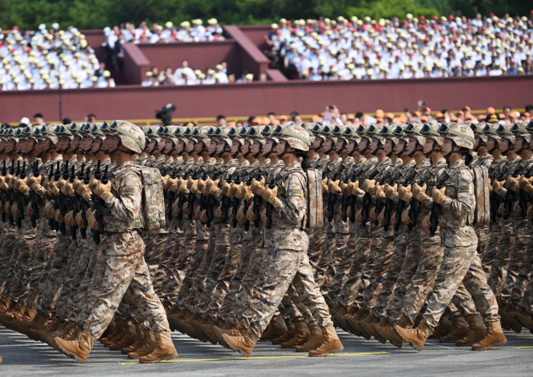 9月3日,紀念中國人民抗日戰(zhàn)爭暨世界反法西斯戰(zhàn)爭勝利80周年大會在北京隆重舉行。這是陸軍方隊接受檢閱。新華社記者 魯金博 攝