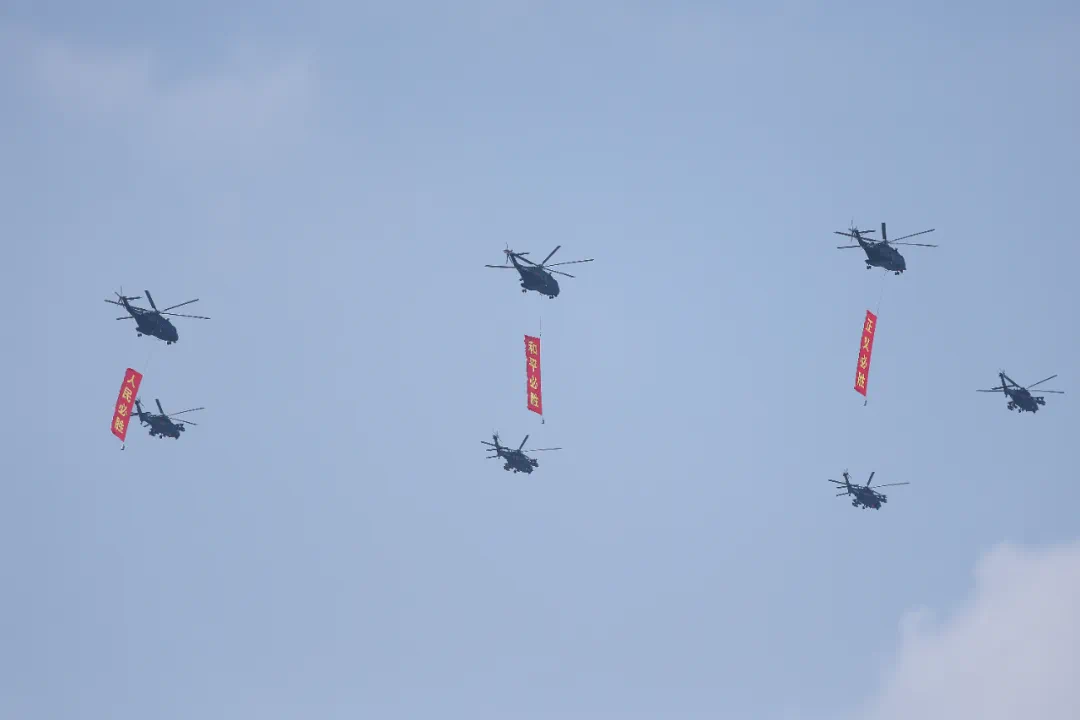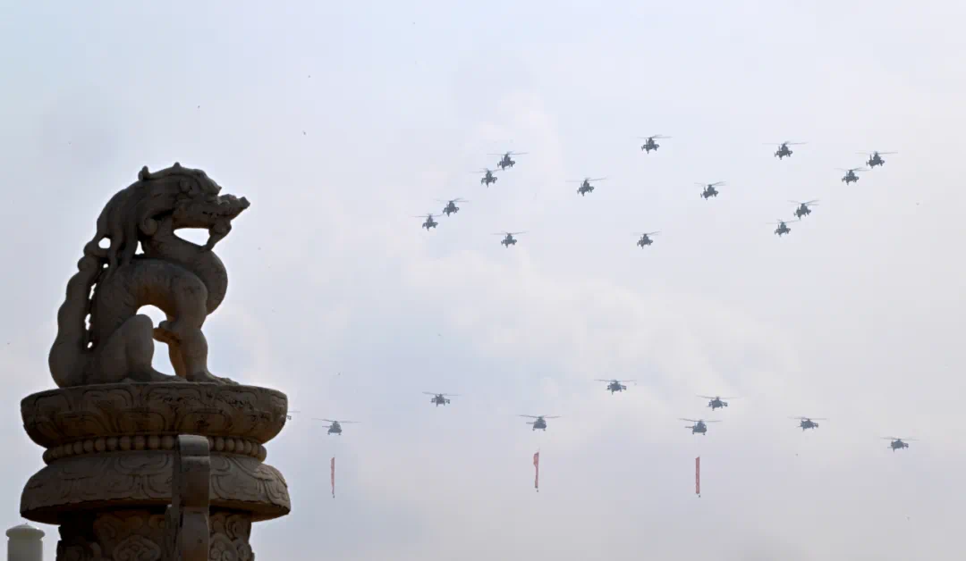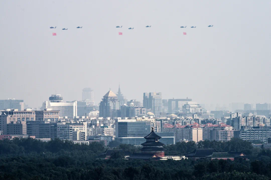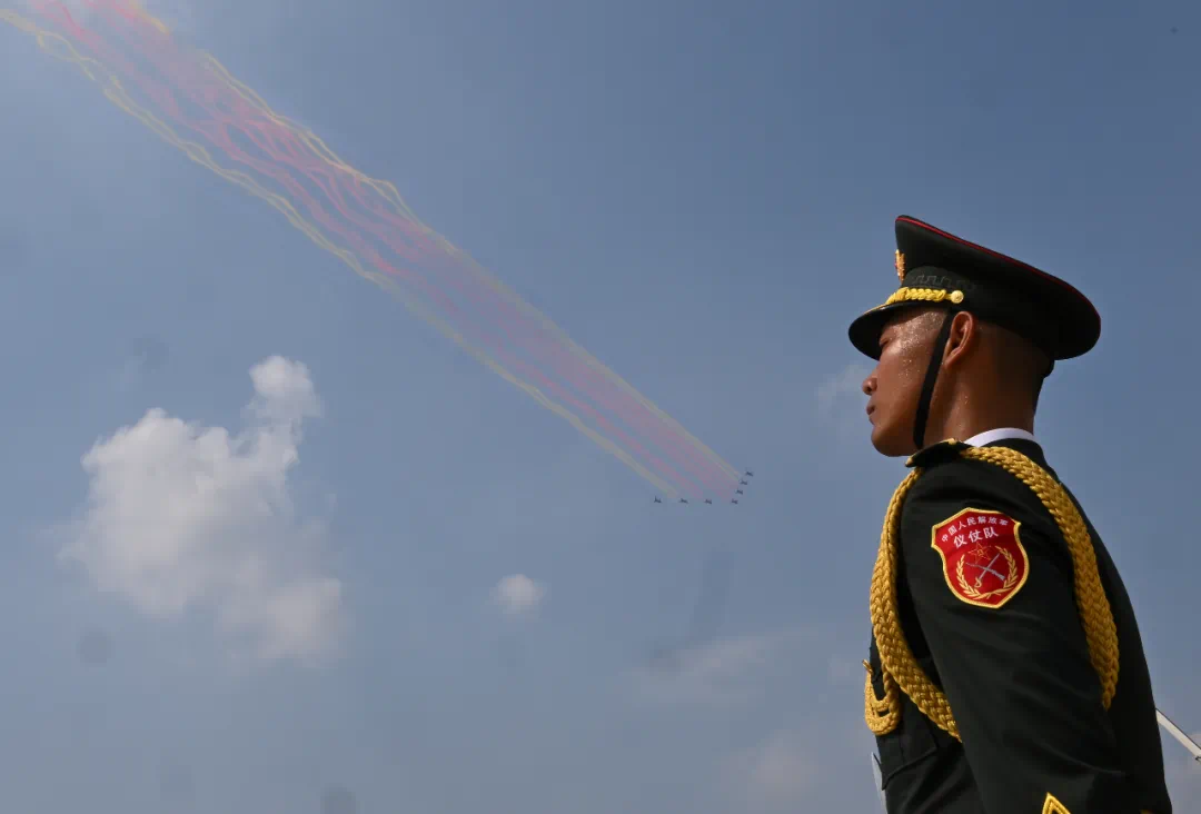 9月3日,紀(jì)念中國人民抗日戰(zhàn)爭(zhēng)暨世界反法西斯戰(zhàn)爭(zhēng)勝利80周年大會(huì)在北京隆重舉行。這是空中梯隊(duì)接受檢閱。新華社記者 肖藝九 攝