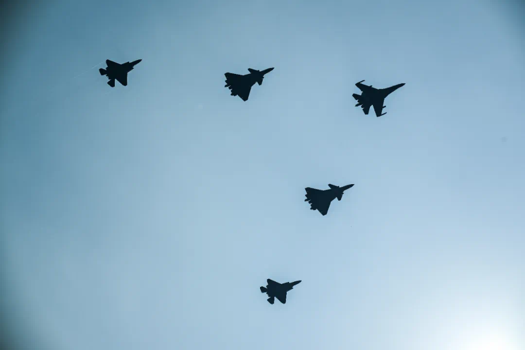 9月3日,紀(jì)念中國人民抗日戰(zhàn)爭(zhēng)暨世界反法西斯戰(zhàn)爭(zhēng)勝利80周年大會(huì)在北京隆重舉行。這是殲擊機(jī)梯隊(duì)接受檢閱。新華社記者 孫瑞博 攝