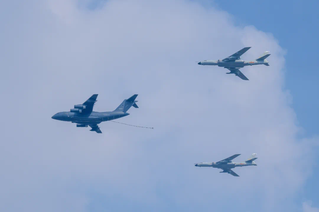 9月3日,紀(jì)念中國人民抗日戰(zhàn)爭(zhēng)暨世界反法西斯戰(zhàn)爭(zhēng)勝利80周年大會(huì)在北京隆重舉行。這是加受油機(jī)梯隊(duì)接受檢閱。新華社記者 孫凡越 攝