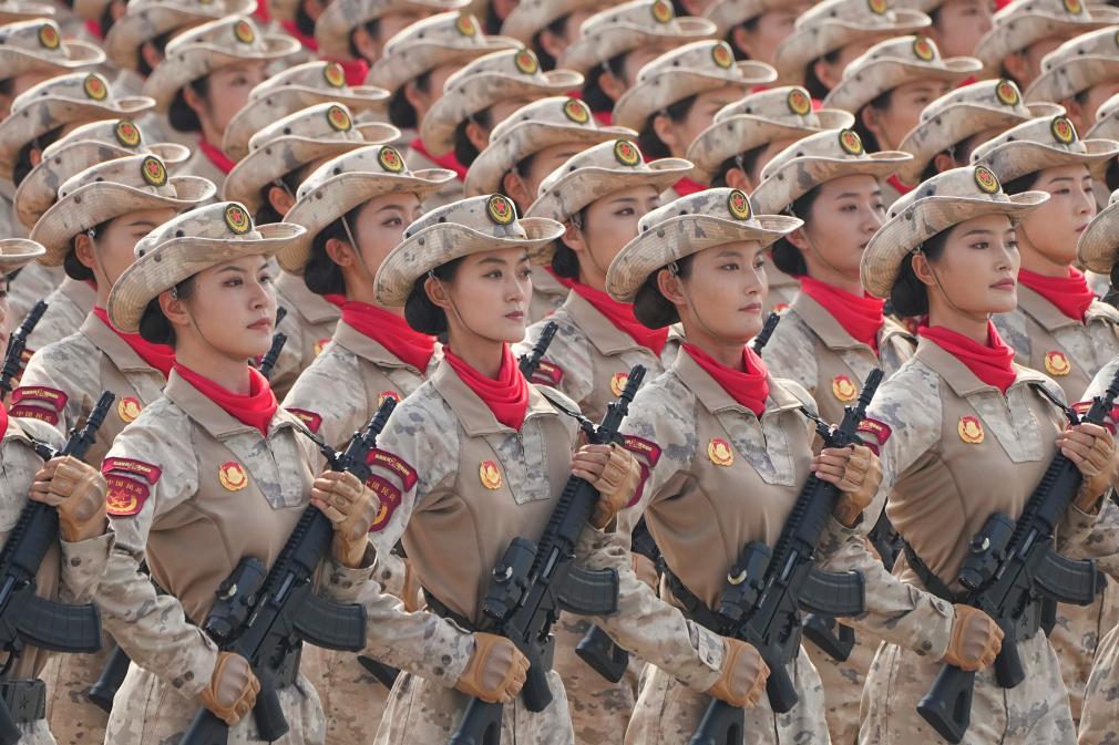 民兵方隊全部由女民兵組成。這是民兵首次亮相以紀念抗戰(zhàn)勝利為主題的閱兵活動。