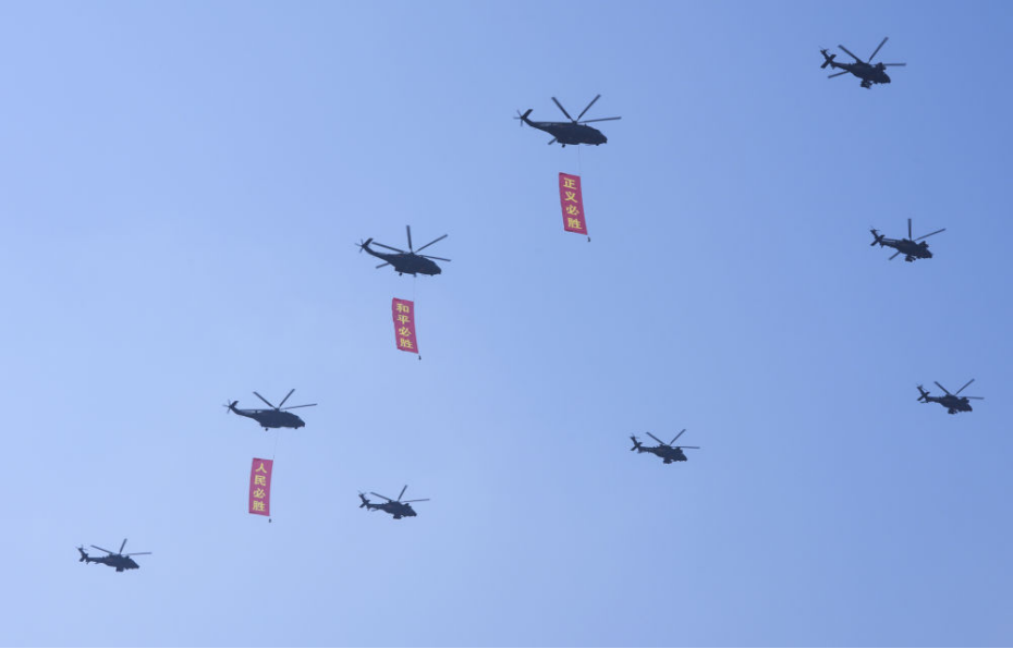 直升機群在空中組成的