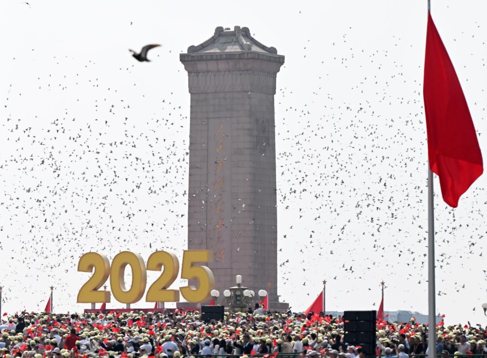 9月3日,現(xiàn)場(chǎng)放飛和平鴿。新華社記者 肖藝九 攝
