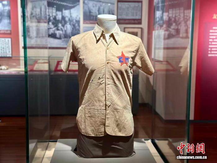 抗日戰(zhàn)爭時期新四軍六師十八旅五十二團二營機炮連指導(dǎo)員姚永欽穿過的球衣。中新網(wǎng)記者 王笈 攝