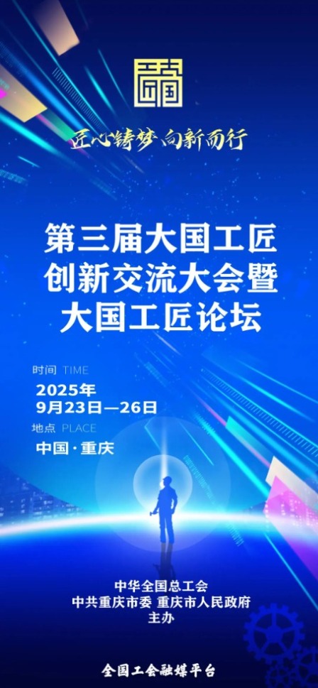 由中華全國總工會聯(lián)合中共重慶市委、重慶市人民政府舉辦的第三屆大國工匠創(chuàng)新交流大會暨大國工匠論壇將于9月23日至26日在重慶舉辦。
