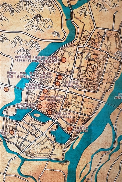 抗戰(zhàn)時(shí)期部分文化名人在桂林居住分布圖。人民日?qǐng)?bào)海外版記者 鄭娜 攝