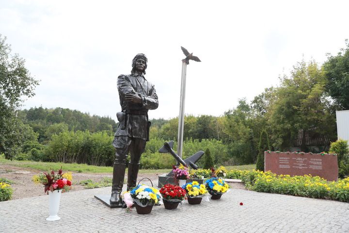 烏克蘭第聶伯河沿岸,秋日的陽光灑在庫里申科學(xué)校對面的廣場上。身著飛行服的蘇聯(lián)空軍志愿隊(duì)重型轟炸機(jī)大隊(duì)少校大隊(duì)長庫里申科的雕塑目視遠(yuǎn)方,在他身邊,一只銅制“蘇聯(lián)雄鷹”展翅翱翔。