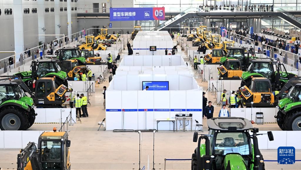 9月20日,選手在重型車輛維修項(xiàng)目比賽中。新華社記者 李嘉南 攝