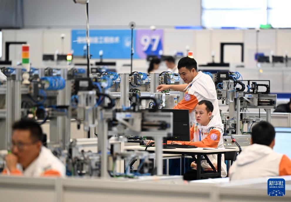 9月20日,選手在工業(yè)機(jī)械項(xiàng)目比賽中。新華社記者 郝源 攝