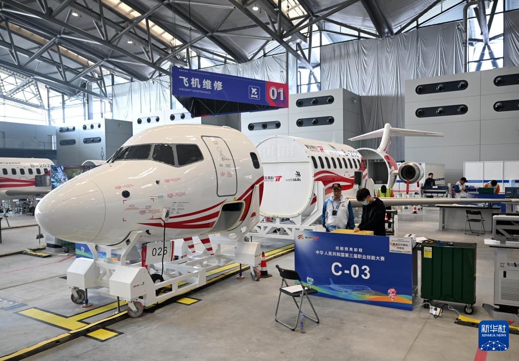 9月20日,選手在飛機(jī)維修項(xiàng)目比賽中。新華社記者 李嘉南 攝