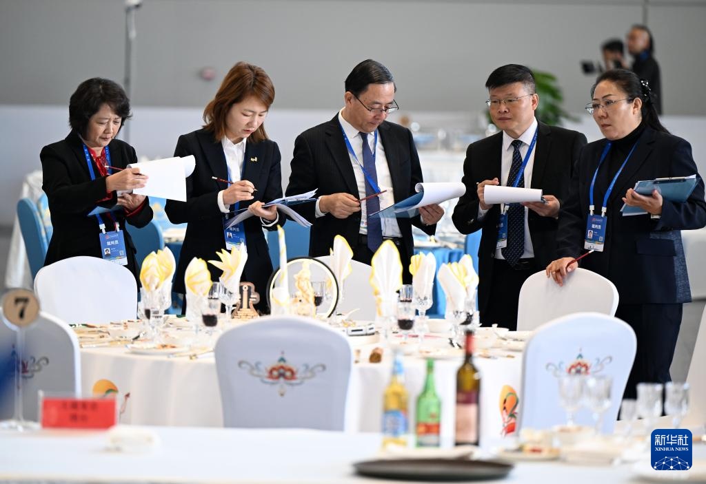 9月20日,裁判員在餐廳服務(wù)項(xiàng)目比賽中評(píng)判。新華社記者 李嘉南 攝