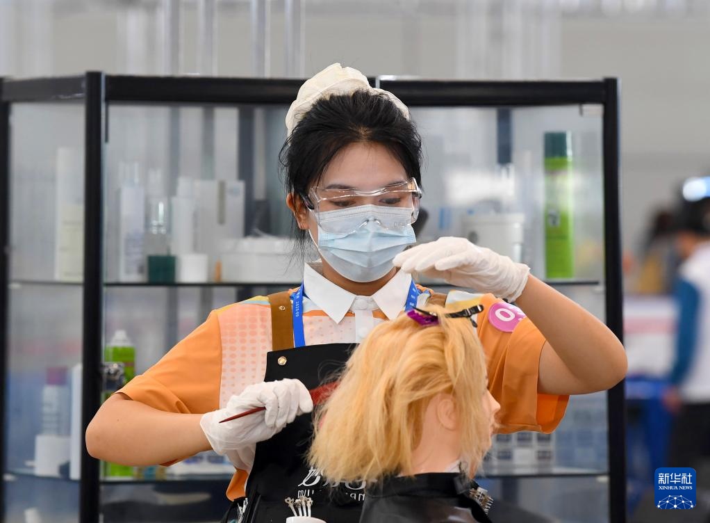 9月20日,選手在美發(fā)項(xiàng)目比賽中。新華社記者 李嘉南 攝