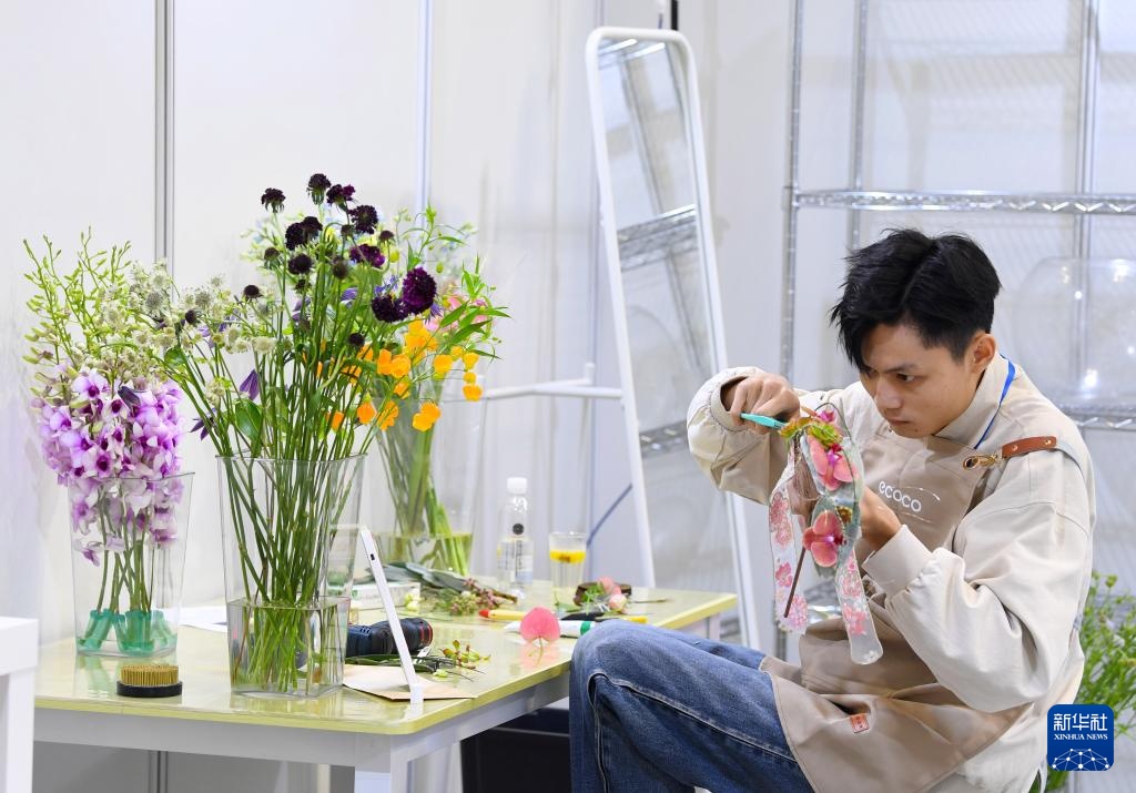 9月20日,選手在花藝項(xiàng)目比賽中。新華社記者 郝源 攝