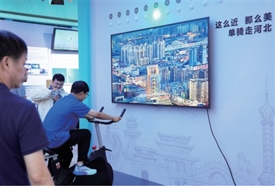 9月23日,河北展區(qū)內的“虛擬騎行環(huán)河北”互動區(qū)吸引眾多嘉賓體驗打卡。