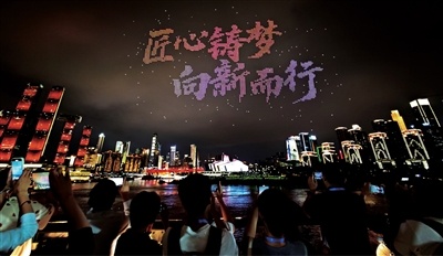 9月22日,5000架無人機點亮重慶夜空,以瑰麗燈光秀向大國工匠致敬。