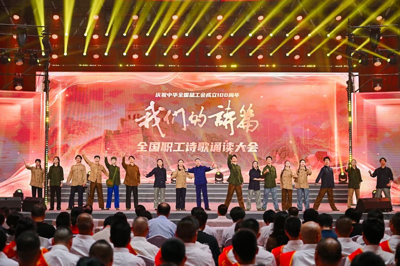 9月27日-28日,由中華全國總工會(huì)宣傳教育部指導(dǎo);中國職工文化體育協(xié)會(huì)、四川省總工會(huì)、中國工人出版社主辦的慶祝中華全國總工會(huì)成立100周年“我們的詩篇”全國職工詩歌誦讀大會(huì)在四川宜賓舉辦。誦讀活動(dòng)以歌?勞動(dòng)華章、詠?建設(shè)偉業(yè)、頌?創(chuàng)夢(mèng)宏圖為主要篇章,通過詩歌誦讀、情景演繹、創(chuàng)作訪談、非遺舞蹈、合唱表演等多種藝術(shù)形式,深情回顧中國工運(yùn)百年奮斗歷程。