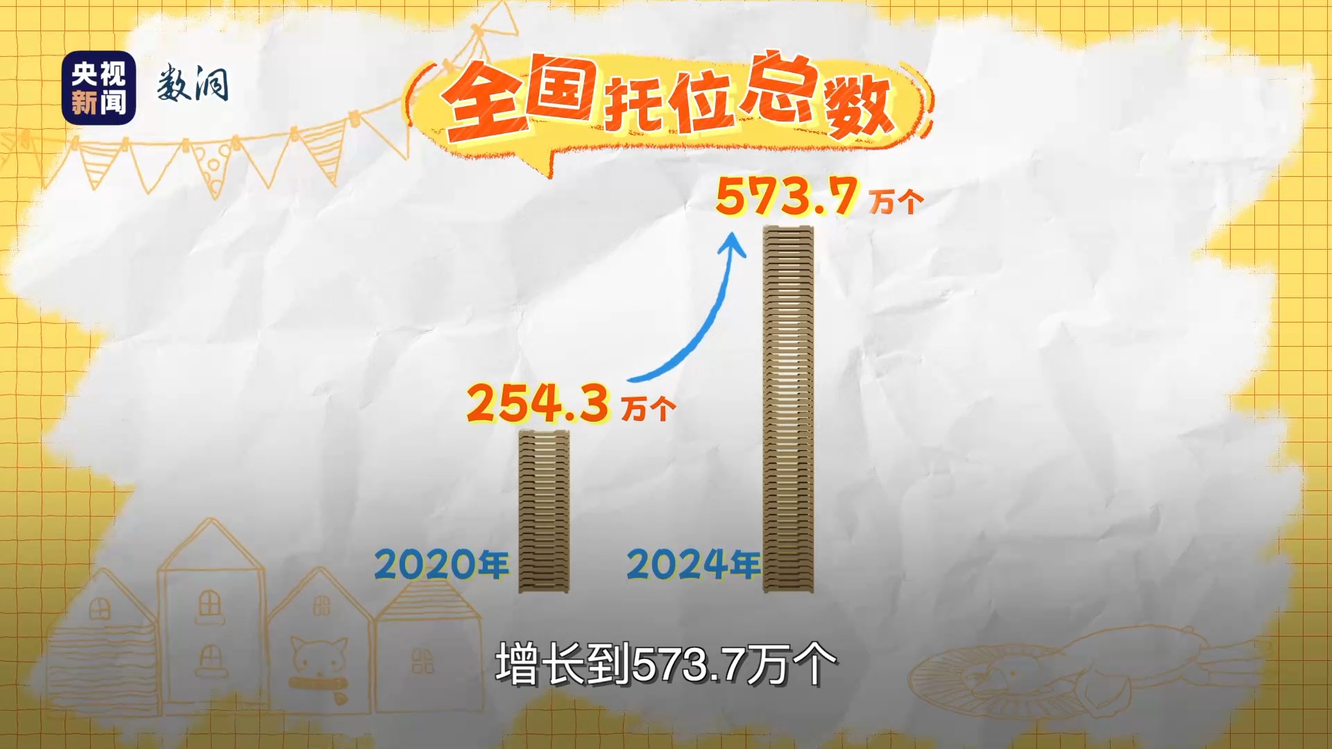 答案,正逐步寫進現(xiàn)實。這五年,全國托位總數(shù)從原來的254.3萬個,增長到573.7萬個,增長126%;每千人口3歲以下嬰幼兒托位數(shù),從1.8個提升到了4.1個,覆蓋率翻倍。
