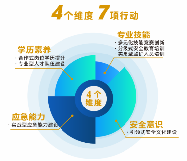 公司圍繞“學(xué)歷素養(yǎng)、專業(yè)技能、應(yīng)急能力、安全意識(shí)”四個(gè)維度,系統(tǒng)實(shí)施七項(xiàng)專項(xiàng)行動(dòng),全面開展全員素質(zhì)提升工程,構(gòu)建起“全員參與、全程覆蓋、全面提升”的素質(zhì)提升機(jī)制。