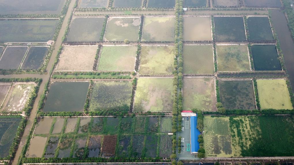 這是大通湖水生植物產(chǎn)業(yè)示范園,園內(nèi)種植了多種水生植物(無人機(jī)照片)。新華社記者 陳振海 攝