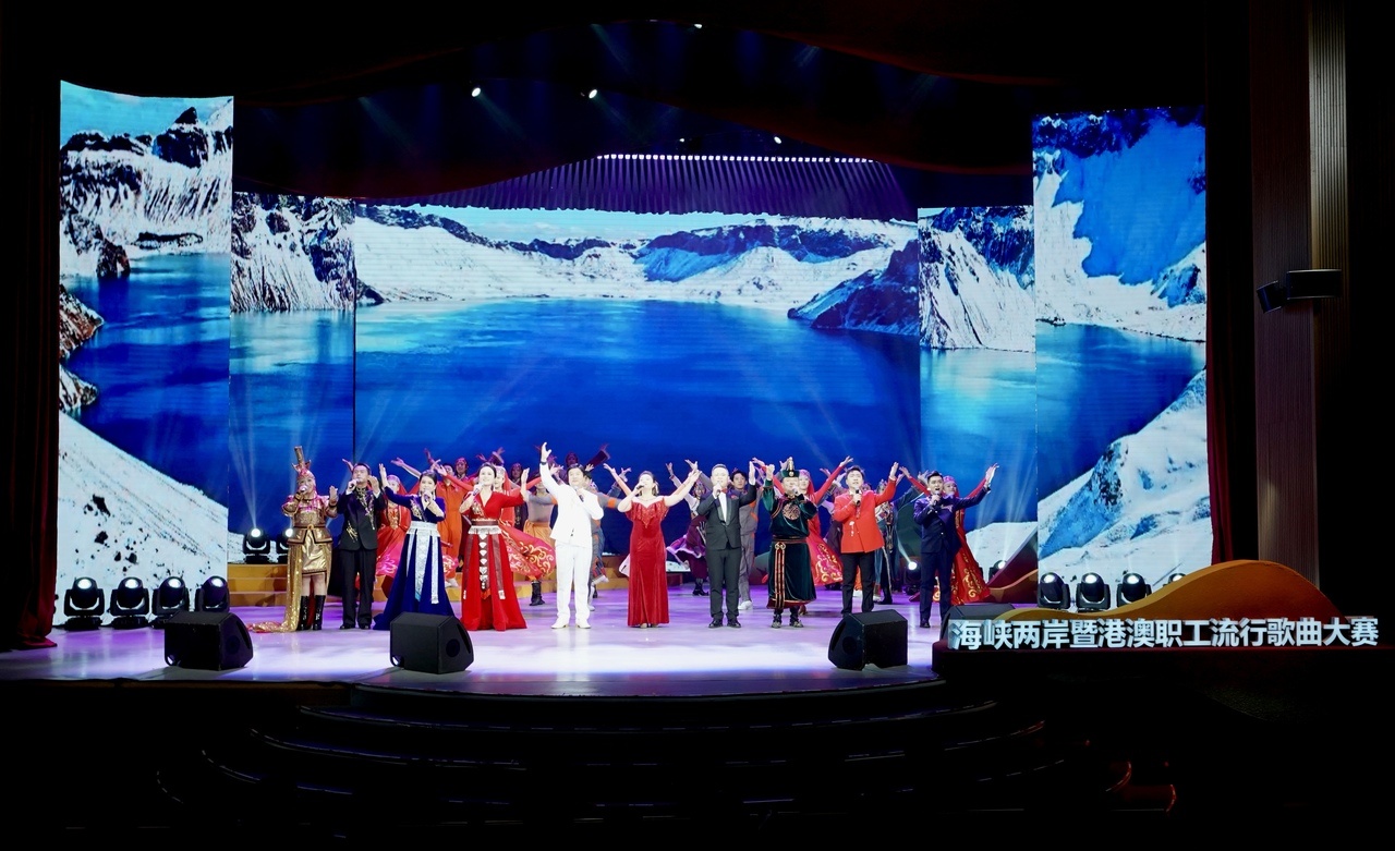 這是由全國總工會(huì)指導(dǎo),中國職工交流中心、全總文工團(tuán)主辦的“跨越山海唱響未來”海峽兩岸暨港澳職工流行歌曲大賽決賽的現(xiàn)場。經(jīng)過前期層層選拔,12月9日,來自海峽兩岸暨港澳地區(qū)的61組職工歌手齊聚北京,以歌會(huì)友,同臺(tái)競技。