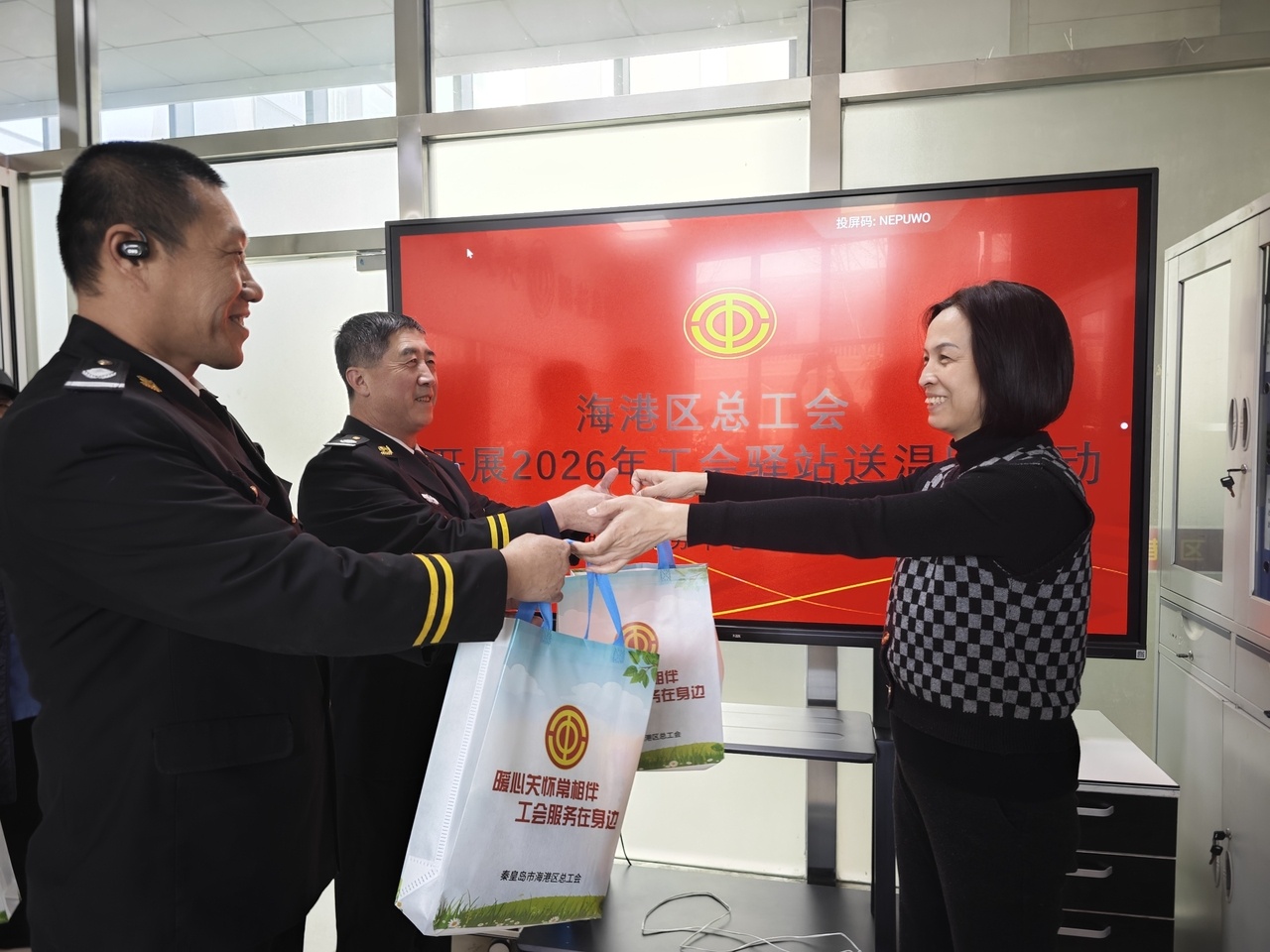 1月19日,河北秦皇島市海港區(qū)總工會(huì)2026年工會(huì)驛站送溫暖活動(dòng)正式啟動(dòng),以遍布轄區(qū)的工會(huì)驛站為核心陣地,為外賣(mài)配送員、快遞員、環(huán)衛(wèi)工人、公安干警等一線戶外勞動(dòng)者送上900套“溫暖大禮包”,讓堅(jiān)守崗位的他們?cè)诤猩钋懈惺艿焦?huì)組織的關(guān)懷與暖意。
