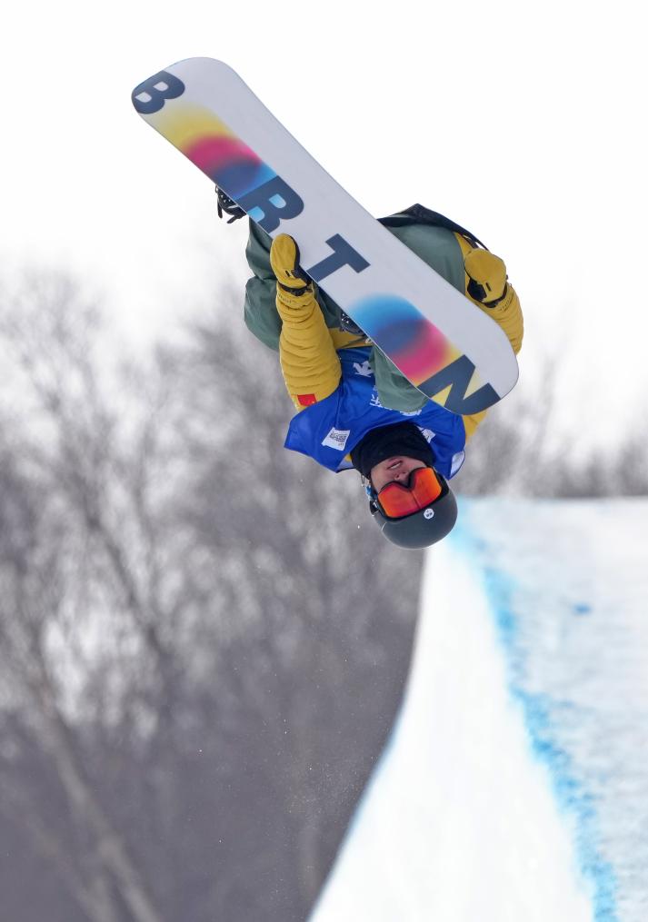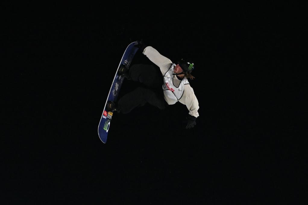 2025年12月10日,王梓陽(yáng)在國(guó)際雪聯(lián)單板滑雪U型場(chǎng)地技巧世界杯男子組資格賽中。新華社記者 王鵬 攝