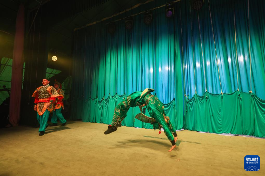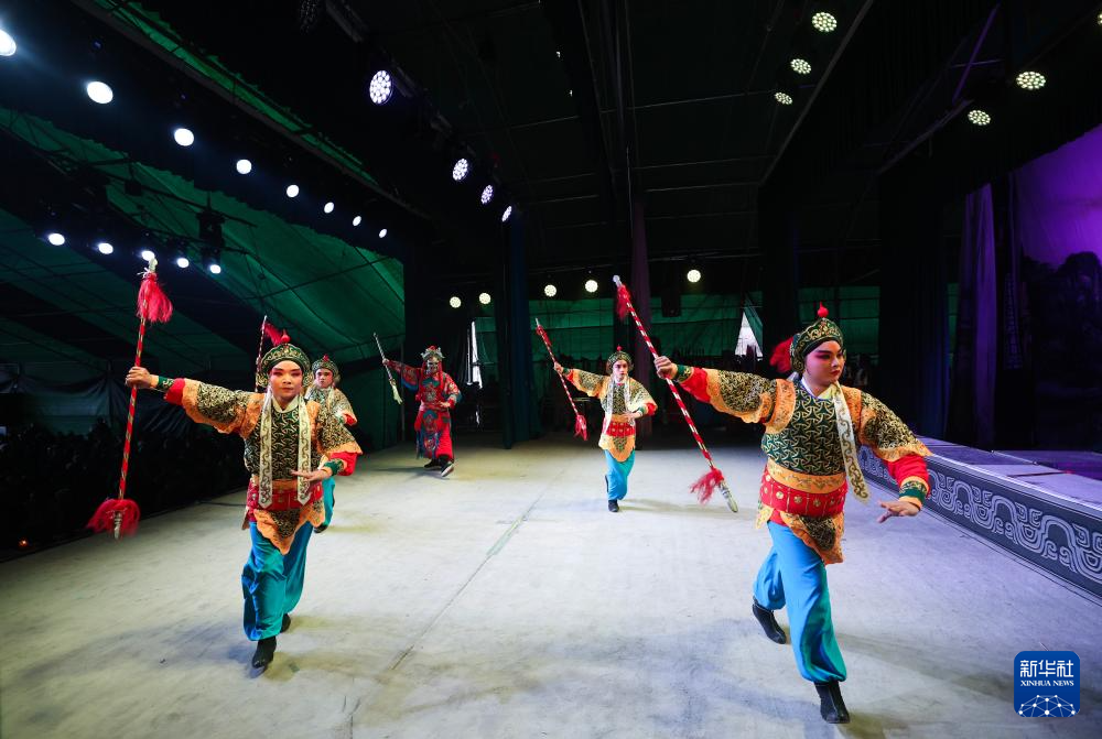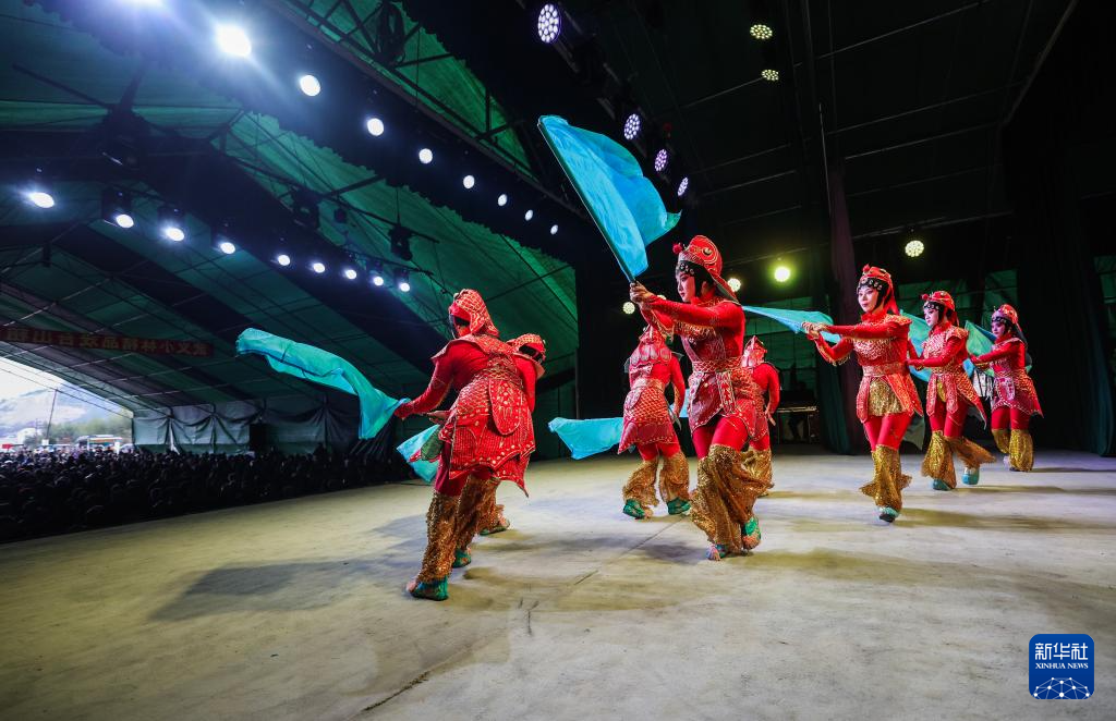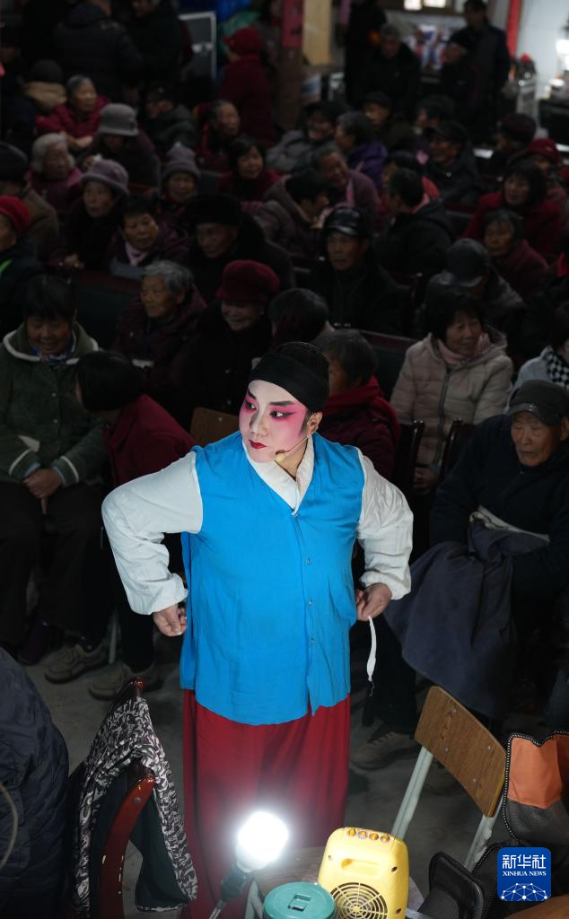 1月29日,建德市婺劇團的演員們在麗水市縉云縣七里鄉(xiāng)梅下村演出。新華社記者 徐昱 攝