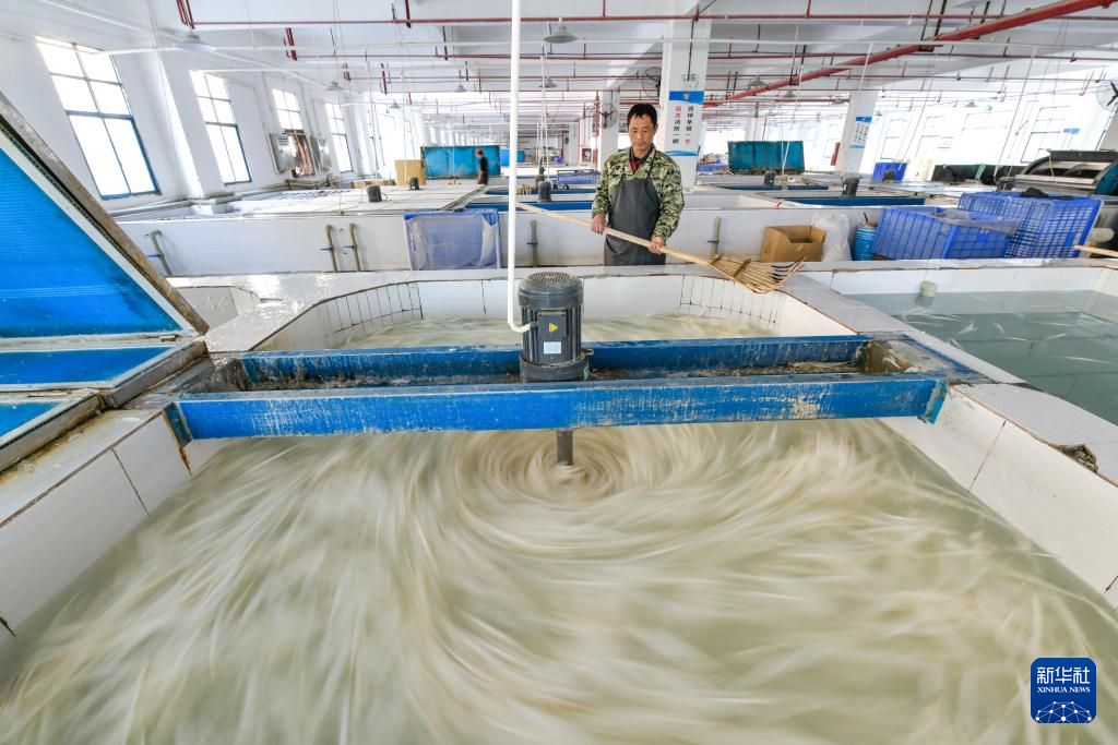 工人在貴州錦屏經(jīng)濟(jì)開發(fā)區(qū)羽毛球生產(chǎn)基地清洗鵝毛(2022年12月19日攝)。新華社記者 楊文斌 攝