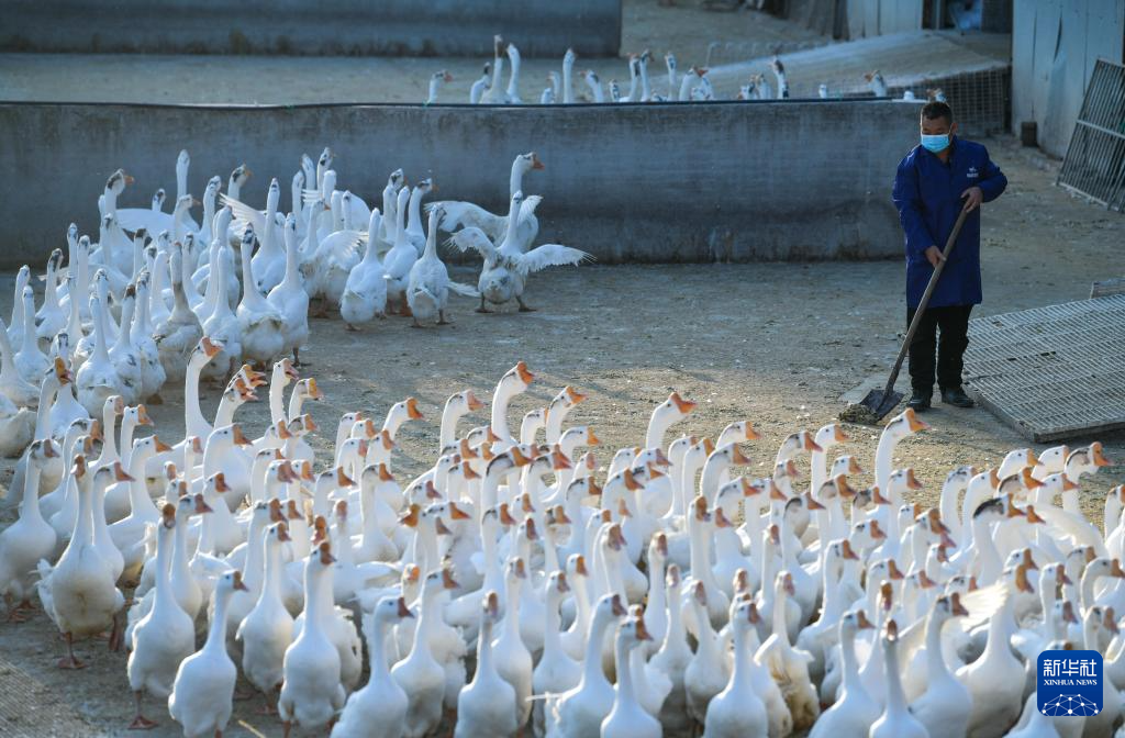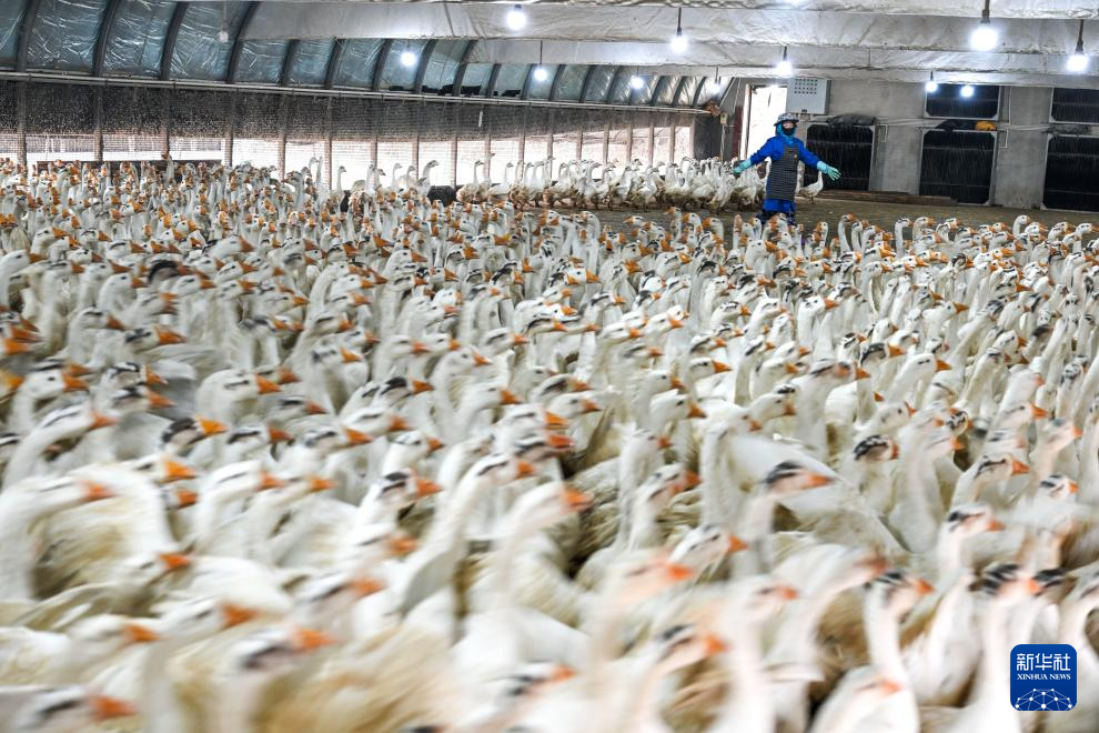 工人在貴州省錦屏縣新化鄉(xiāng)歐陽村的生態(tài)鵝育雛基地管理種鵝(2026年1月21日攝)。新華社記者 楊文斌 攝