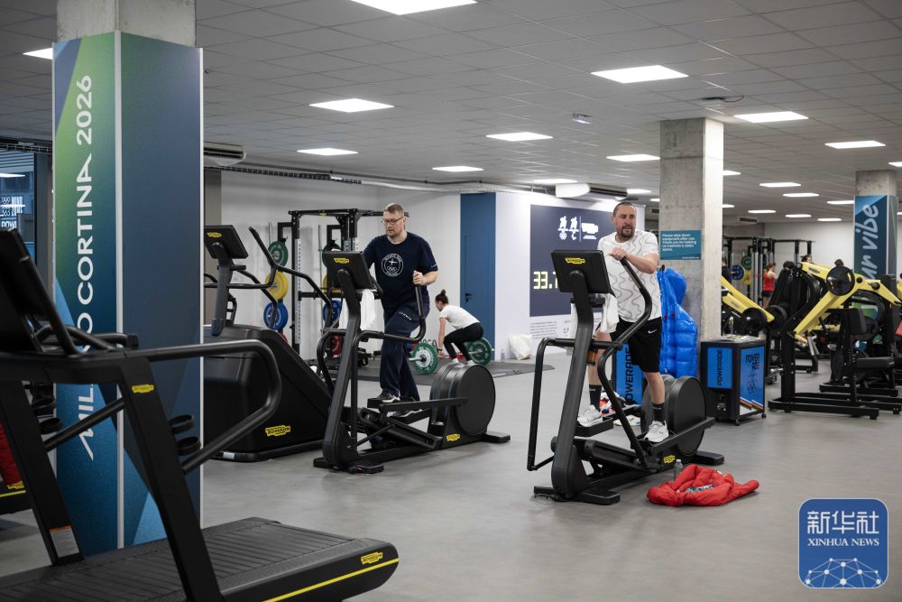 在意大利米蘭奧運(yùn)村,運(yùn)動(dòng)員在健身房?jī)?nèi)鍛煉。新華社記者 張豪夫 攝