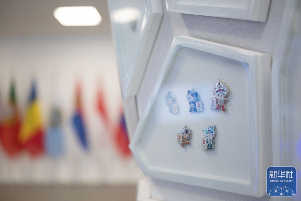 這是2月3日在意大利米蘭奧運(yùn)村拍攝的北京奧運(yùn)會(huì)吉祥物徽章。新華社記者 張豪夫 攝