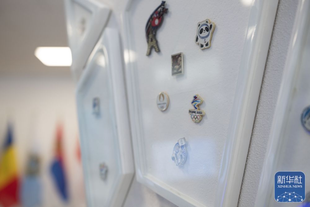 這是2月3日在意大利米蘭奧運(yùn)村拍攝的北京冬奧會(huì)徽章。新華社記者 張豪夫 攝