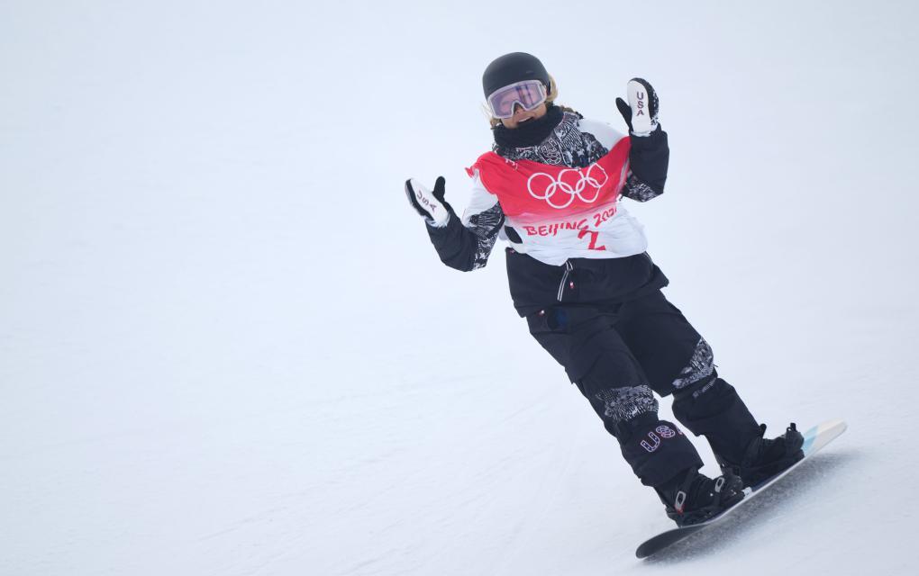 2022年2月10日,美國選手克洛伊·金在北京冬奧會(huì)單板滑雪女子U型場地技巧奪冠后。新華社記者 彭子洋 攝