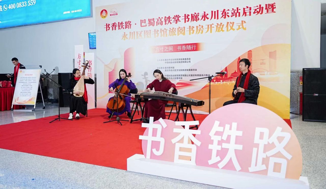 “書香鐵路·巴蜀高鐵掌書廊”項目結(jié)合小開本便攜圖書的場景化適配,為旅客帶來“零費用、隨處用、隨身用”的閱讀新體驗,按照“統(tǒng)一標(biāo)準(zhǔn),適配需求,主客共享,屬地管理”的建設(shè)原則,聯(lián)合全市各公共圖書館及鐵路路段在重慶境內(nèi)高鐵站點共同推進(jìn)“書香鐵路·重慶‘掌書’閱讀驛站”建設(shè),推動高鐵閱讀空間實現(xiàn)共建、共管、共享,搭建融合鐵路文化、人文景觀、區(qū)域特色的展示平臺。