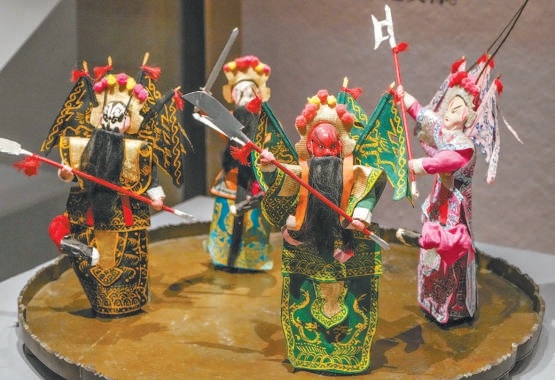 “這對舞獅道具推測是明晚期至清早期的,保存如此完好,非常難得。”章文永說,展覽中還有很多“可觀、可感、可玩”的展品。比如,一組北京鬃人以“三英戰(zhàn)呂布”為主題,展板上特意配了“說明書”:輕敲底部銅盤,鬃人即旋轉(zhuǎn)舞動。觀眾可以想象“盤中戲”的趣味互動。