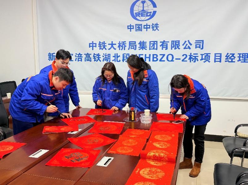 新春將至,年味漸濃。為傳承中華優(yōu)秀傳統(tǒng)文化,營造喜慶祥和、團(tuán)結(jié)奮進(jìn)的節(jié)日氛圍,凝聚建設(shè)合力,中鐵大橋局宜涪高鐵2標(biāo)項目部近日開展“迎新春”主題文化活動,全體職工揮毫潑墨寄祝福,以筆墨傳情、文化聚力,為宜涪高鐵這一貫通鄂渝的交通大動脈注入新春動能。