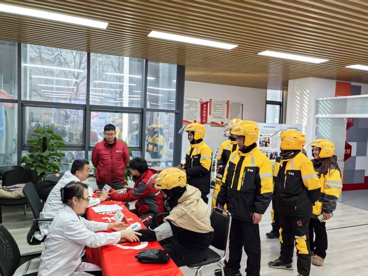 近日,北京市朝陽區(qū)醫(yī)療衛(wèi)生工會所屬職工志愿服務(wù)隊前往潘家園街道,開展“月末周五”外賣小哥專場健康義診活動,在寒冷的冬日為外賣小哥送上免費健康檢查與健康宣教服務(wù)。