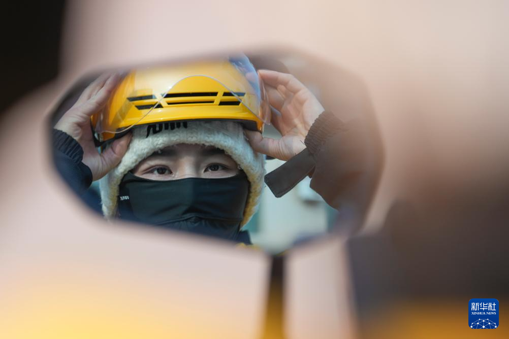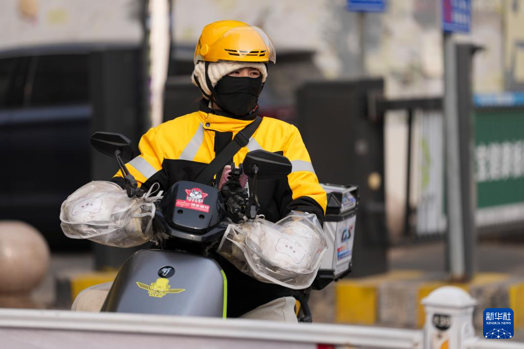 臨近春節(jié),訂單增多,戚德敏和同事們冒著嚴寒,將一份份美食準時送達。成為外賣騎手近兩年,戚德敏的配送總里程已達3萬多公里。工作中,她有過不被理解的委屈,也經常被顧客、商家不經意間的溫暖感動著。戚德敏說,作為一名騎手,她的職責就是守護好一份份被等待的溫暖。