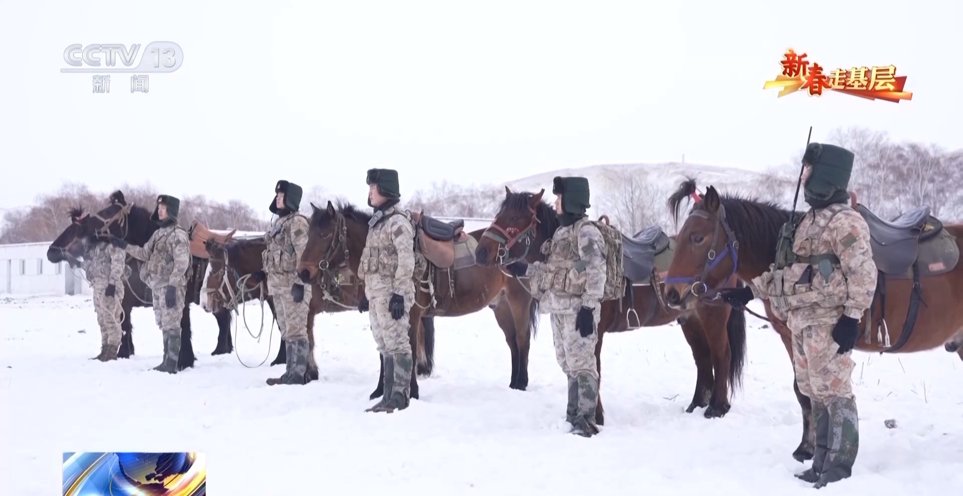 總臺(tái)央視記者 劉潔:官兵們正在進(jìn)行騎馬巡邏的準(zhǔn)備,每匹軍馬都系上了鮮艷的紅頭繩,給冬日的邊關(guān)帶來了暖暖的年味。這些軍馬是官兵們巡邏途中最親密的戰(zhàn)友,今天他們?cè)僖淮翁ど线叿姥策壜?,用?jiān)守迎接新春。