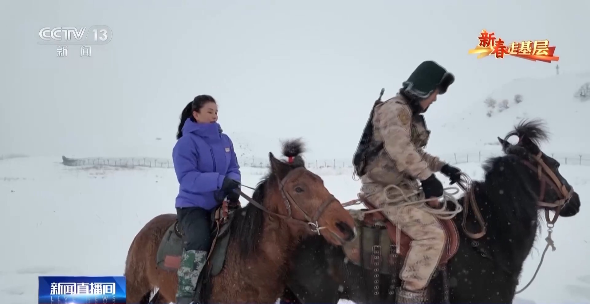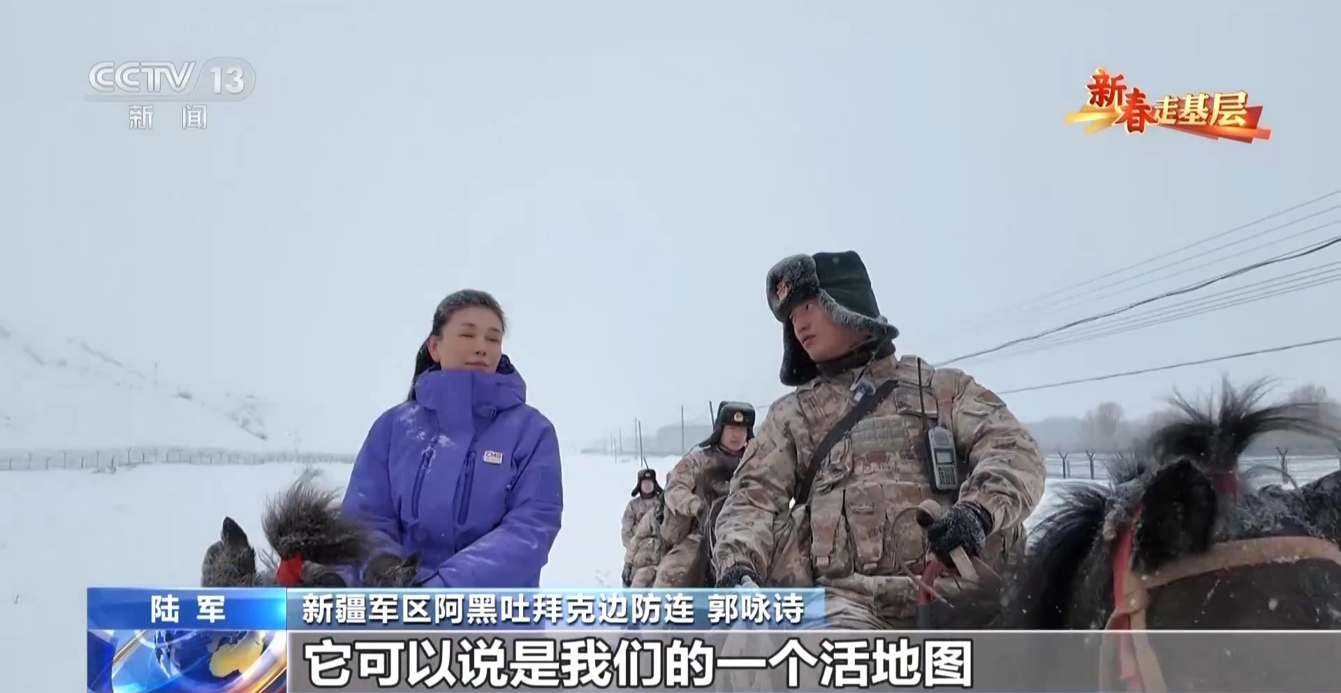 總臺(tái)央視記者 劉潔:第一次騎上馬背,比想象的要高很多,而且顛簸得厲害,心里很緊張。雙腿要時(shí)刻夾緊,雙手要攥韁繩,才能在雪地上保持平穩(wěn)。僅僅是跟隨隊(duì)伍緩行,不一會(huì)兒就會(huì)覺得腰腿酸軟??上攵?,官兵們長(zhǎng)年累月在復(fù)雜的地形中騎行巡邏,需要多么過硬的本領(lǐng)和毅力。