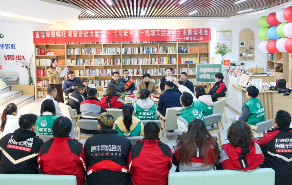 2月2日上午,一場以“重溫殷殷囑托 凝聚奮進(jìn)力量”為主題的《習(xí)近平與一線職工朋友們》讀書分享會在湖北十堰市張灣區(qū)國瑞里社區(qū)職工書屋舉行。十堰市勞模工匠、汽車工人、環(huán)衛(wèi)工人、社區(qū)工作者以及外賣員、快遞員、家政服務(wù)員等20余名一線職工代表齊聚一堂,共讀《習(xí)近平與一線職工朋友們》一書,在文字間重溫習(xí)近平總書記對一線職工的深切關(guān)懷,在交流分享中凝聚奮進(jìn)力量。十堰市、張灣區(qū)等有關(guān)工會參加活動。
