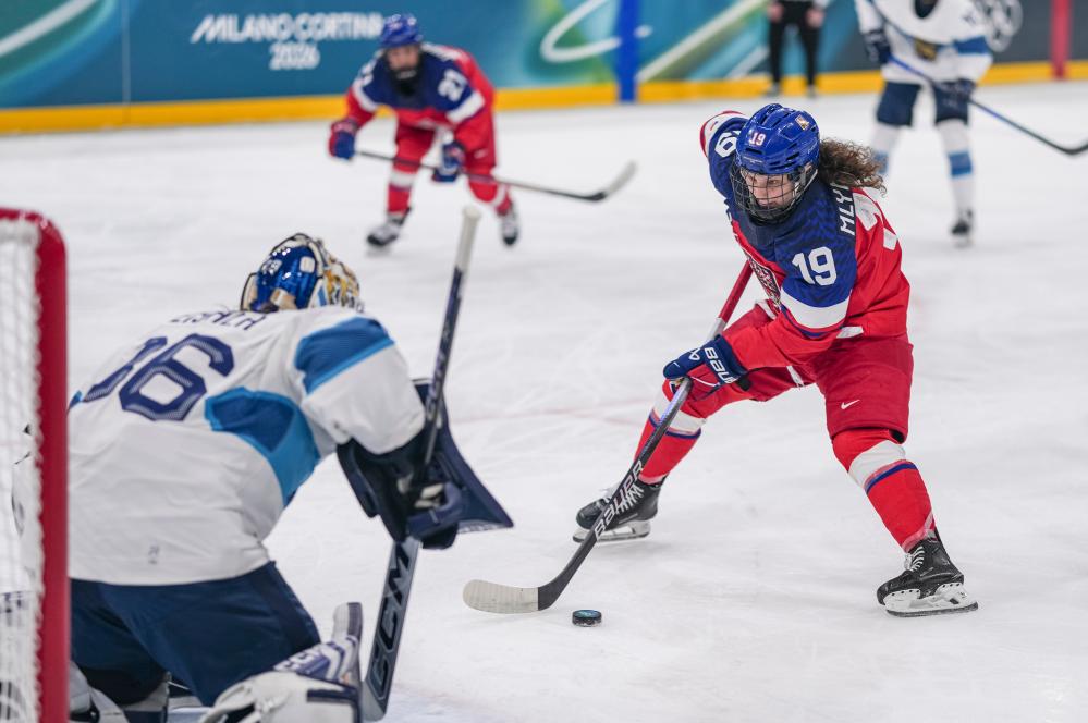在A組,捷克隊和芬蘭隊之前均未有勝績,因此都非??释麆倮?。捷克隊近年來在國際賽場上戰(zhàn)績出色,在開賽前被廣為看好。然而在米蘭,她們先是以1:5負(fù)于美國隊,后又在占盡優(yōu)勢的情況下被瑞士隊逆轉(zhuǎn),遭遇兩連敗。芬蘭隊是上屆冬奧會銅牌得主,但受到前些天諾如病毒影響,多名主力未能達到最佳狀態(tài)。