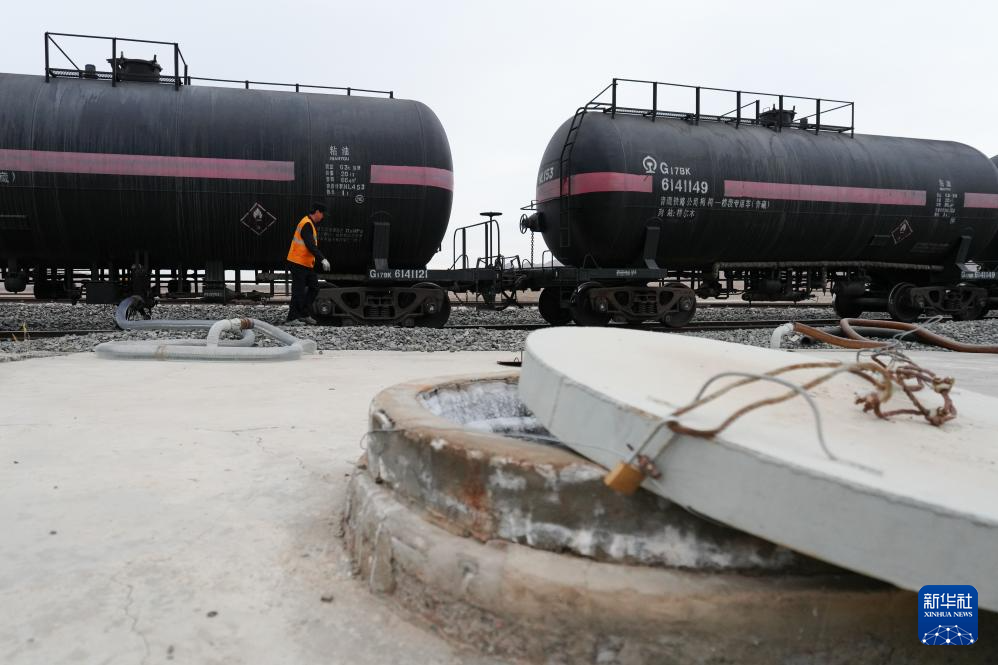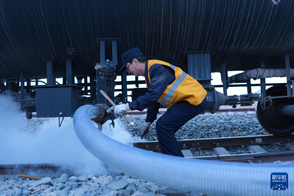 2月4日,韓景泉在放水過程中巡檢列車,前面是工區(qū)儲水井。新華社記者 齊芷玥 攝