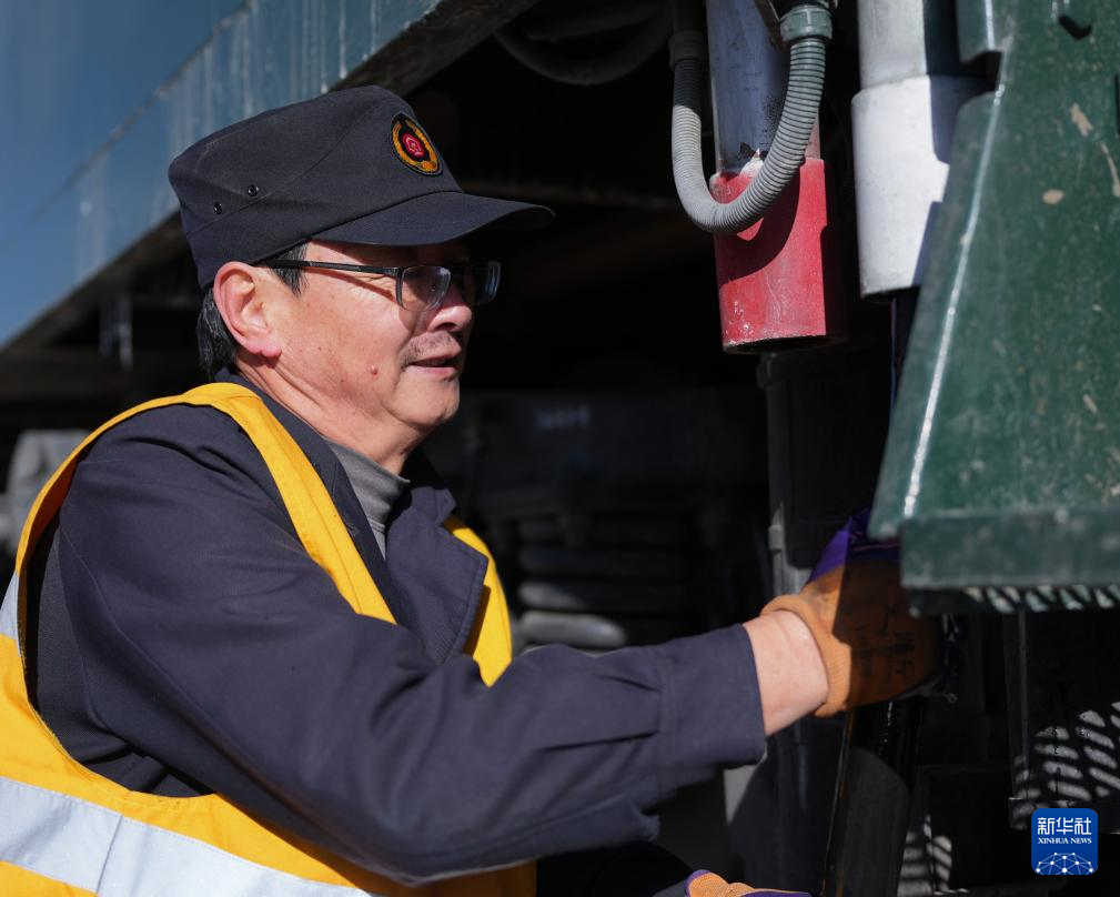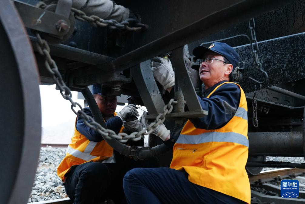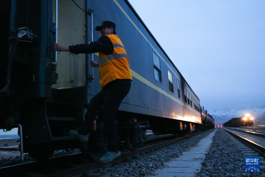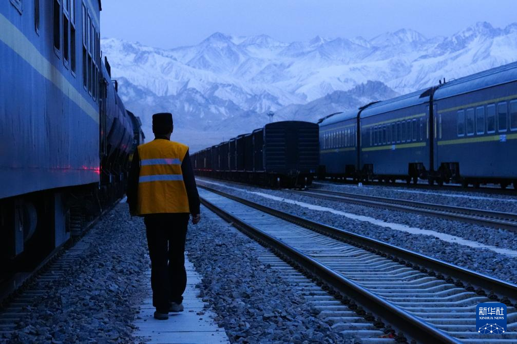 2月4日,韓景泉在列車避讓等候途中下車巡視。新華社記者 齊芷玥 攝