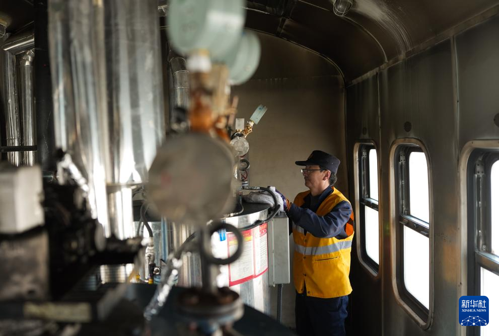 2月5日,韓景泉在清潔列車上的鍋爐設(shè)備。新華社記者 張龍 攝
