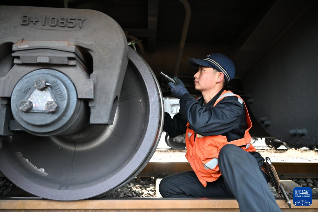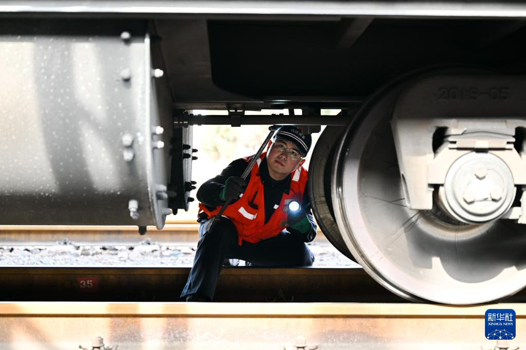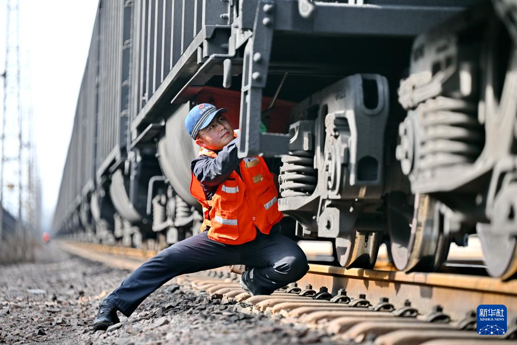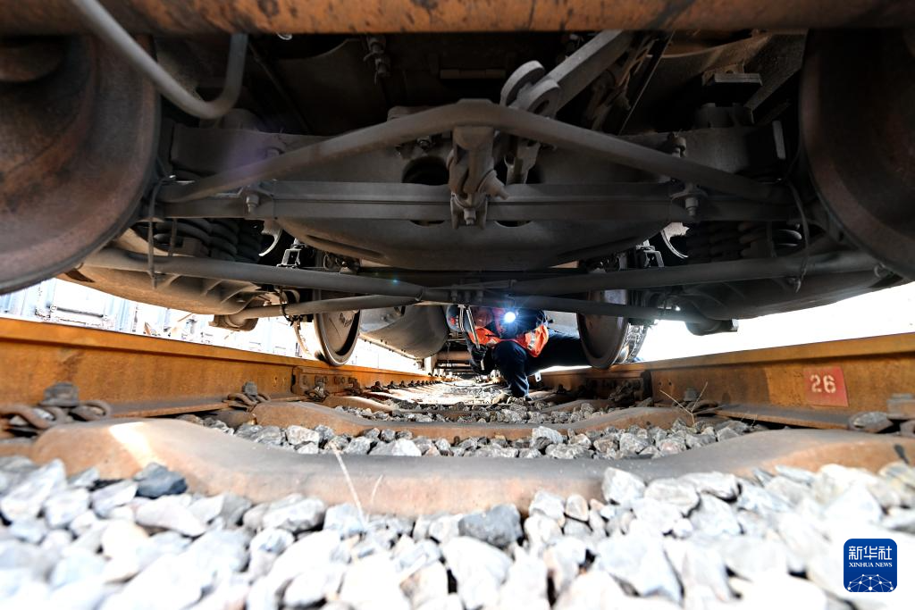 春節(jié)前夕,位于河北省平山縣的朔黃鐵路西柏坡站內(nèi)一派繁忙景象。正值電煤保供的關鍵時期,西柏坡列檢作業(yè)場的檢車員們守護著列車的安全運行,為國家能源供應保駕護航。西柏坡列檢作業(yè)場成立于2004年,目前該作業(yè)場共有71名檢車員,分為5個班次,全天候輪班作業(yè)。他們主要負責朔黃鐵路西柏坡站至蠡縣站區(qū)間列車的技術檢查、維修工作,同時承擔敬業(yè)鐵路專用線返空列車的檢修任務。