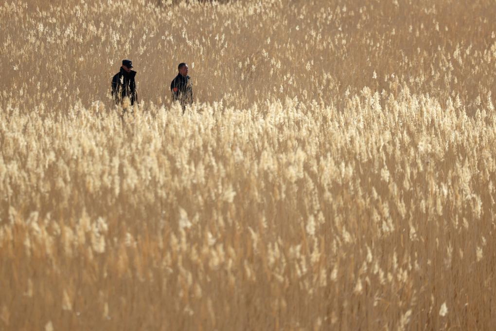 憑著多年巡護(hù)經(jīng)驗(yàn),吳興東帶隊(duì)走進(jìn)一片名為馬圈灣的草海。這里蘆葦茂盛,遠(yuǎn)遠(yuǎn)望去滿目金黃,美不勝收。可踏入其中,滋味卻并不好受。干枯的蘆葦?shù)兹~硬如尖刺,扎得小腿生疼。腳下鹽堿地泛著白霜,十分脆,踩上去深一腳淺一腳。